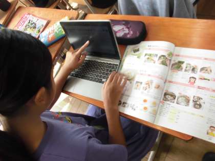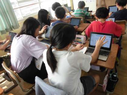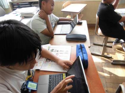 おひたしとゆでいもの、湯と水の使いわけを確かめました。