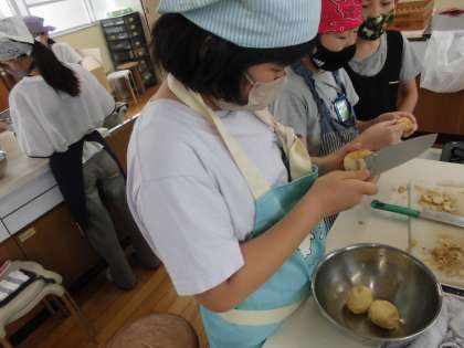 包丁を使っていもの皮むきをしました。