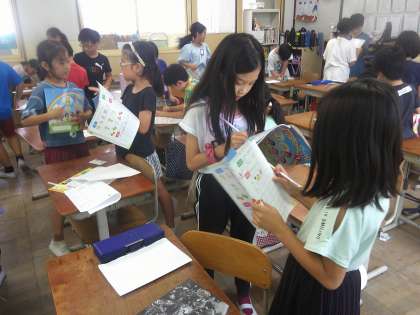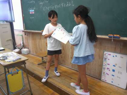 外国語活動では、友だちに自分の思いを伝えることを大切にしています。