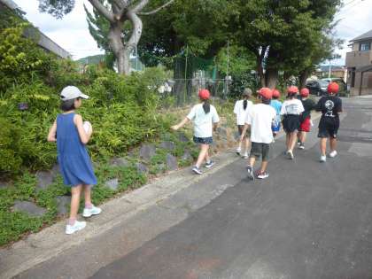 総合的な学習の時間では、校区内を歩いてバリアフリーの工夫を調べに行きました。点字ブロックなどの工夫も見つかる一方で、「ここは少し危ないかも?」とそれぞれ気づきがあったようでした。今後は、校区内を歩いて気付いたことを交流してまとめていけたらと思います。