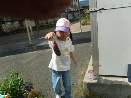 小ぶりなサイズですが、おいしそうなさつまいもです。土の中から出てくると「うわ!さつまいも!もっと出てくるよ!ほってみる!」うれしい声が聞こえました。