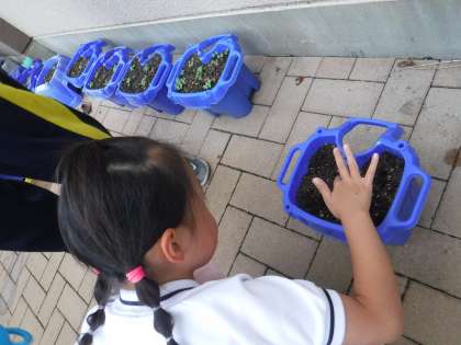 水菜は一人一人のポットに種をまきました。はやく大きくなるといいですね!