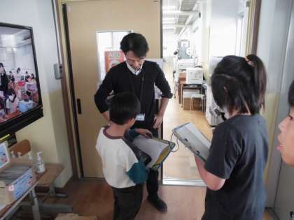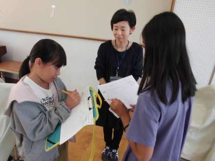 学校の先生たちに質問をしている様子です。