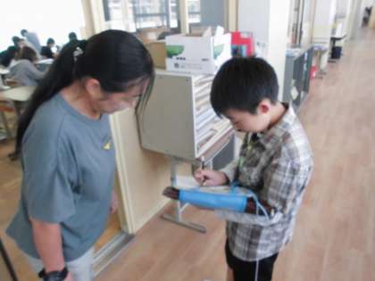緊張しつつも、英語が伝わるよう頑張っています。