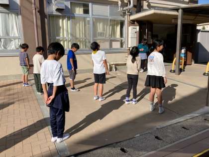 ここしばらく、晴れていてもなかなか雲がどいてくれなかったのですが、ようやくそんなお天気になったので、こちらのクラスでもかげおくりに挑戦しました。