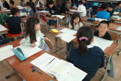 国語の学習では、話し合い活動の学習に入りました。この日は「クラスみんなで」何を決めようかと相談しました。『宿題を全員提出するには』『給食当番表なしでするには』など、いろいろなテーマが挙がりました。