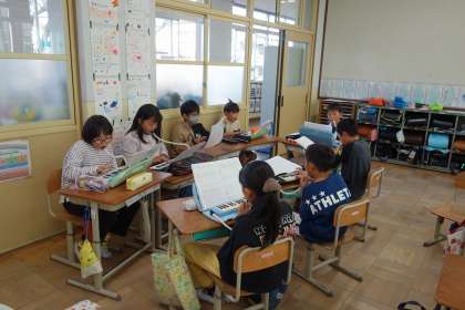 学習発表会の練習が始まっています。まずはパート別に分かれて練習です。始まったばかりで、まだまだこれからですが、決まった楽器やパートで精一杯練習する姿が見られました。