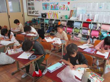 学校に帰ってからのふりかえりでは、「季節によって葉っぱの色が違う」「気温も下がって涼しかった」「秋の植物がたくさんあった」「冬はどうなっているのかな」などたくさんの気づきを発表していました!!