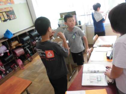 ジェスチャーゲームでは、友達の動作に笑顔が溢れていました。