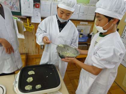そらいろ1組は、チヂミをつくりました。