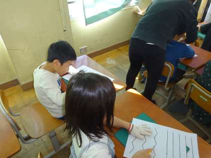 カッターの先に手を置かないように気を付けながら取り組みました。