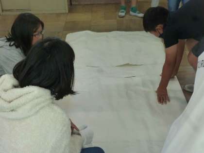 算数科では、面積の学習をしています。面積の単位や求め方などを学習し、今回、教室の面積はどのくらいなのかを実際に調べました。今後も、ぜひ身の回りのものの面積を調べたり学習を広げていったりしてもらえると嬉しいです。