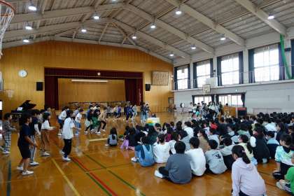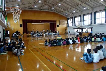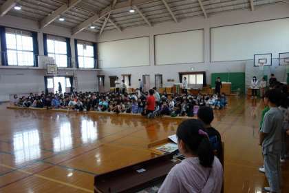 学習発表会のリハーサルをしました。お客さんに3年生と6年生、それからたくさんの教職員が見に来てくれました。子どもたちはドキドキしたようですが、そうは見えないくらい堂々と生き生き発表していました。明日、保護者の方々に見に来てもらう時も同じようにできることを願っています。