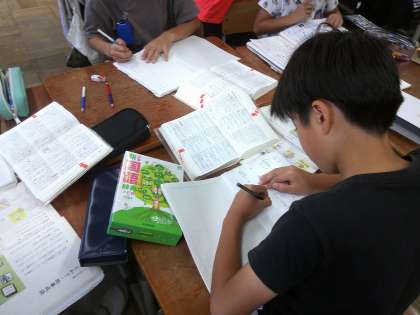 ことわざの意味をグループで協力して国語辞典を使って調べました。