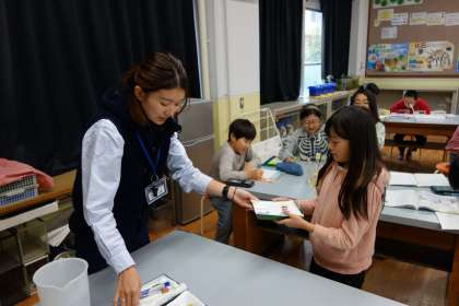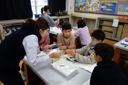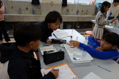 理科では実験室で学習することが増えました。子どもたちはいつもと違う環境でも一生懸命取り組んでいます。試験官とスポイトを持つ姿はまるで小さな科学者のよう。
