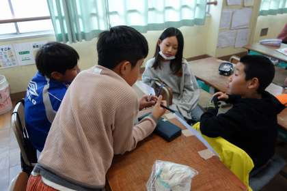 琵琶湖疏水では学習の記録として、グループで1人だけタブレットをもっていきます。また、時間を把握するために腕時計をつけていく子どももいます。だれがその役を務めるのか、真剣に話し合っていました。