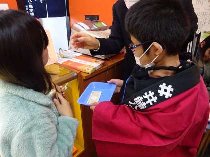 お店でユニフォームを着て、販売体験をしたり、商品を売るためのPOP