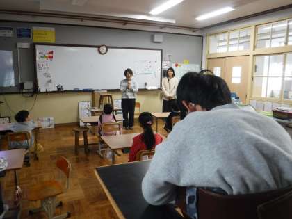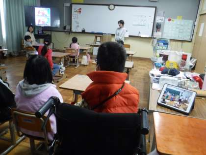 今日は、PTAお話サークル「もこもこ」さんが教室に読聞かせに来て下さいました。最初は、かいけつゾロリのクイズをしていただきました。