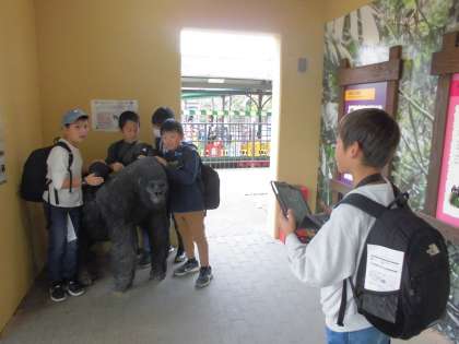 琵琶湖疏水記念館で疏水の学習をしてから、京都市動物園でゆっくりとした時間を過ごしました。グループで動物を見たり、グループで記念撮影を撮ったりしながらどの班も楽しく見学できていました。オウムに「こんにちは!」と声を掛けると「こんにちは。」と返事が返ってきてとても嬉しそうでした。