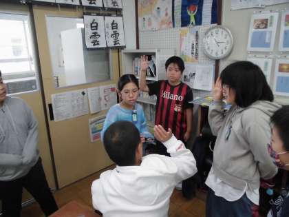 わくわくWORKLANDで体験したことを同じブースの友達と振り返り、