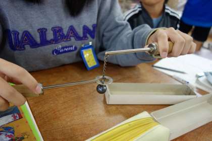 次回の理科は理科室で実験をします。鉄の球を温めると体積が変化するかどうかを確かめます。火を使って鉄球を熱する危険を伴う実験ですが、子どもたちは慎重に実験をして実験結果を導けるでしょうか。