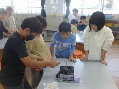 理科「ものの温度と体積」では、空気・水・金属は温めたり冷やしたりすると体積はどうなるかについて実験をしながら確かめています。実験では安全に気を付けながら、班で協力して取り組むことができました。実験から分かったことをぜひ、生活にも繋げて広げていってもらえたら嬉しいです。