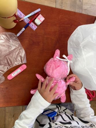 作りたいものに合わせて、使うビニル袋の種類や大きさを考えたり、形を変えたりと工夫していました。
