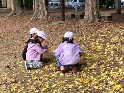 友だちと見せ合ったり比べたりしながら、お気に入りの葉っぱを集めていました。
