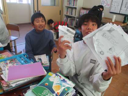 机の中からプリントが出てきた子や持って帰るべきものが出てきた子がいました。