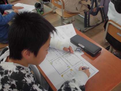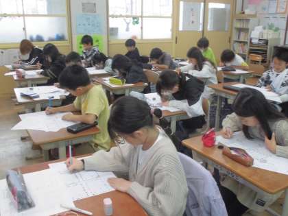 隣の国の韓国について学習しました。韓国語であいさの言葉を学び、ハングル文字を書く学習もしました。ハングル50音表を見ながら丁寧に自分の名前を書くことができました。その後の活動の名刺交換では、韓国語で友達とあいさつをして、楽しく名刺を交換することができました。