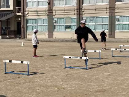 体育科のハードル走では