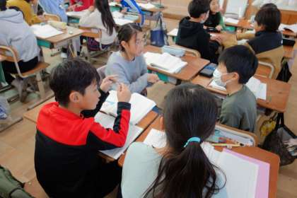 この日は、プラタナスの木に登場する「おじいさん」はどうして姿を見せなくなったのか、また主人公たちと会うことができるのかについて考えました。「おじいさんの謎」を解くべく、子どもたちはいろいろな想定をしながら楽しく話し合っていました。