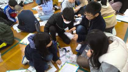 総合的な学習の時間「ごみって何かな?」では、身近なものを取り上げごみかどうかを考えたり、何に生まれ変わるかを学習しました。グループワークでは、「私の家では、紙パックはまな板にも使っているよ」など生活を振り返りながら友達と考える姿が見られました。ぜひ、今後も環境やごみについて考えを広げてもらえると嬉しいです。