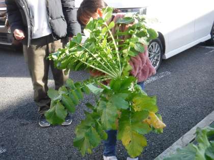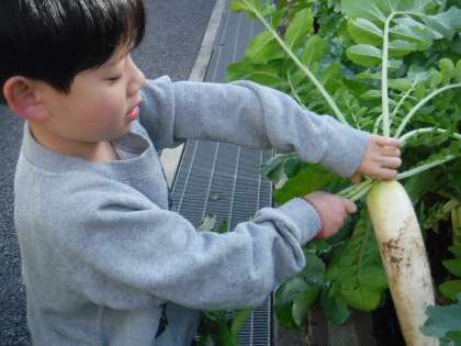 今日は、待ちに待った大宮農園の大根を収穫しました!毎日水やりをして様子を観察してきました。葉っぱも立派で美味しそうです。