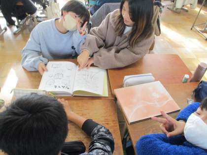 卒業アルバムのクラスのページをつくるために今までの卒業生のアルバムを参考にしながら考えています。