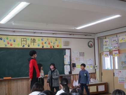 狂言のように声や動きを工夫して演技をする子もいて、楽しく学習に取り組むことができました。