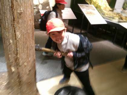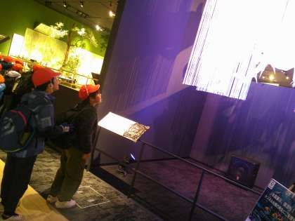バスに乗って1時間以上の移動で到着早々疲れが見えていましたが、博物館に入り見学が始まると、目を輝かせながら「えーすごい!龍がいる!」「こんな大きいオオサンショウウオみたことない」などと言いながら楽しそうにしていました。