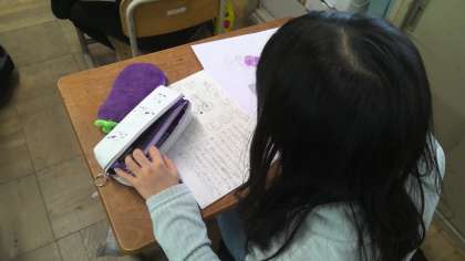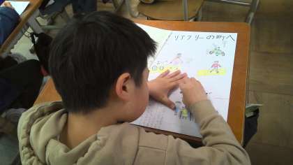 「ともに生きる」では、これまで調べたことや体験したこと、ゲストティーチャーのお話を通して、自分が発信したいことをまとめています。ポスターでは、自分の伝えたいことがどうすればより分かりやすく伝えられるかを考えて、絵や説明をいれながら取り組む子ども達の姿が見られました。