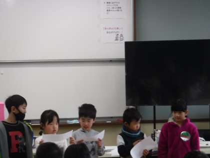 いよいよ北上支部の育成学級のみんなが来る日になりました。「ようこそ!大宮小学校へ!」「かんばんつくりの人たちは、家庭科室。土台を作る人は、そらいろ3の教室に集まってください。」とはじめの挨拶をしました。