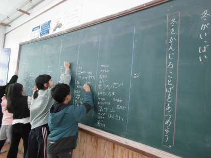 冬休みのできごとを思い出しながら言葉を集めている様子でした。