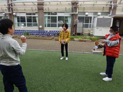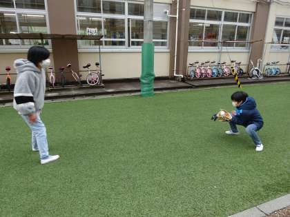 みんなうれしそうにグローブをはめて、キャッチボールをしました。