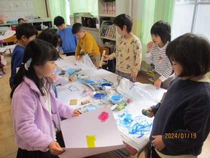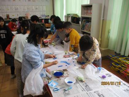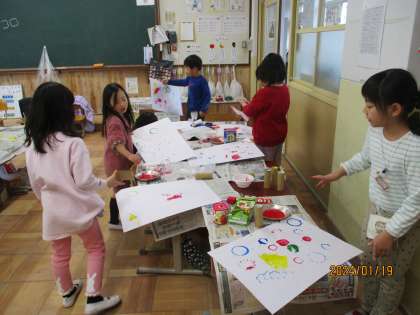 れんこんやにんじん、卵のパックなどいろいろな材料を用意していただいたおかげで楽しく活動することができました☆