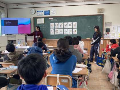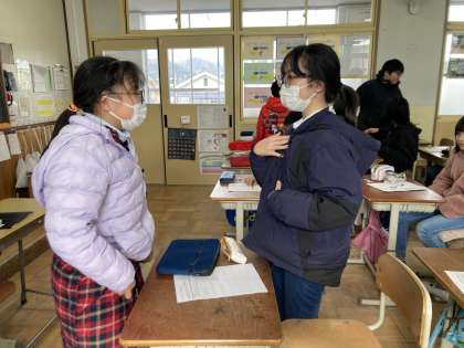 外国語の授業で、学校生活の思い出を話す学習をしています。