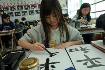 書写の学習では「平和」の文字を書きました。書写の学習もまとめの時期です。止め、払い、はね等、これまで学習してきたことを生かして集中して練習しています。習字の時間は心静かに取り組んでおり、心が落ち着きます。