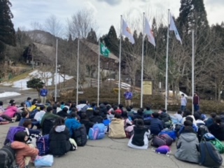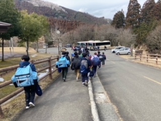 山の家の退所式をしました。バスに乗って学校に帰ります。