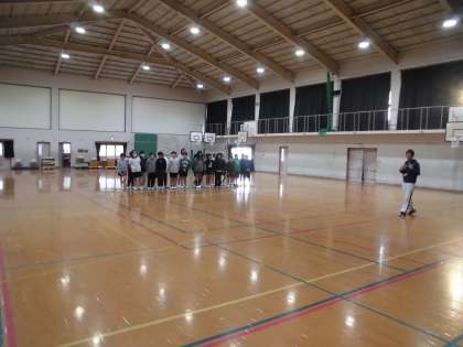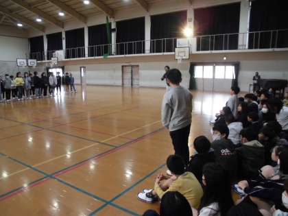 体育館で各クラスごとに歌を歌いました。