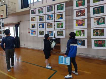 図工展のはのぞいてもらえましたでしょうか。子どもたちは今日鑑賞に行きました。友達が思いを込めて一生懸命作った作品を見て楽しんだり、下級生の作品を見て懐かしんだり、高学年の作品で感動したり、いろいろな感想をもったようでした。