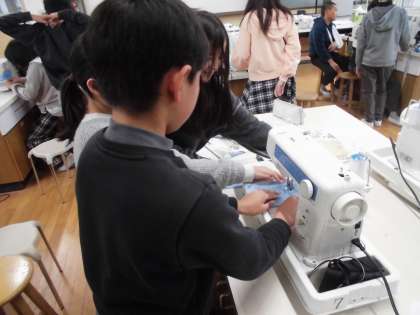練習布を使ってミシン縫いを行いました。