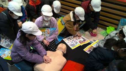 心臓マッサージの仕方や、AEDの使い方など、見たり使ったりしながら学ぶことができました。