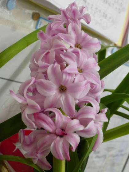 教室で育てているヒヤシンスが咲きました!植物係の子が「花咲いてるで!」と教えてくれました。毎日水仙やヒヤシンスの様子を観察し、丁寧にお世話をしてくれています。まだ咲いていないヒヤシンスもきれいな花を咲かせるといいですね🌸